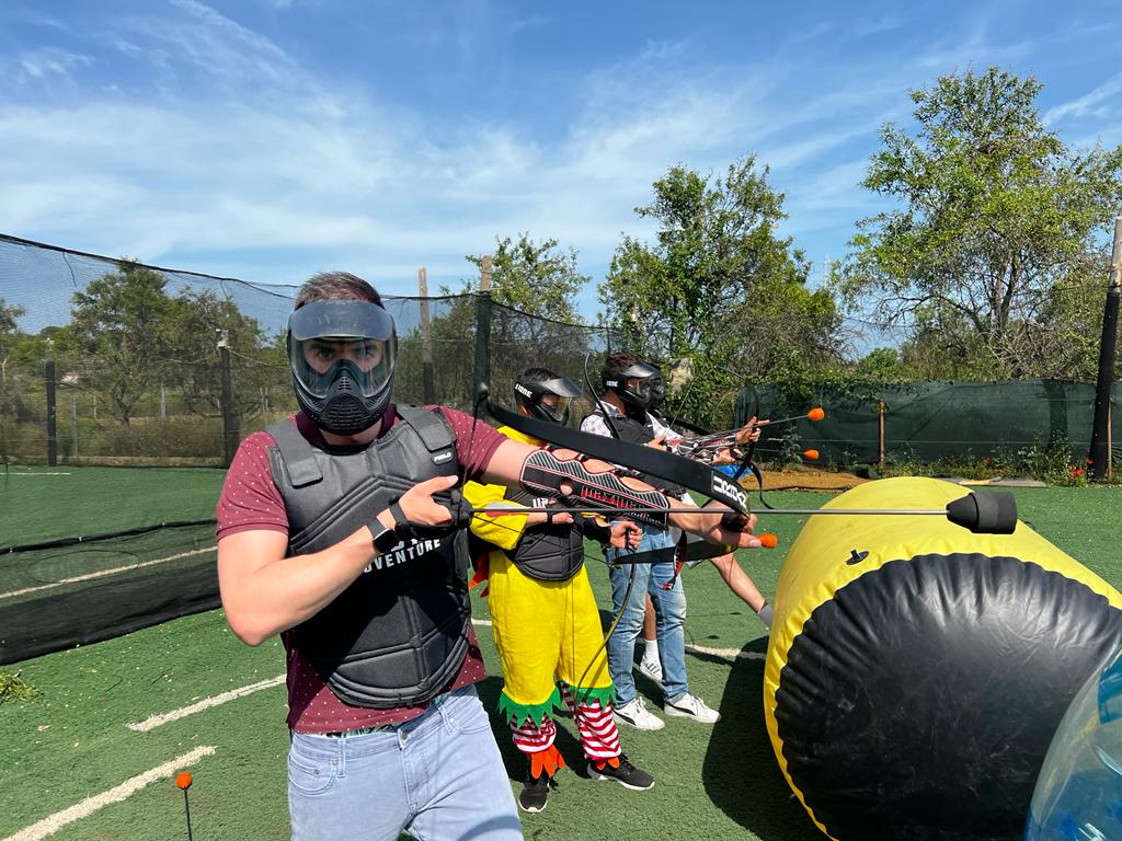 Antes de empezar, nuestro equipo de monitores os recibirá en el recinto de San Antonio de Benagéber, os explicará las normas, el funcionamiento del material y las diferentes modalidades de juego. La seguridad es prioritaria: todo el mundo juega con máscara de protección y flechas de espuma, y las reglas están planteadas para que el contacto sea siempre controlado y el ambiente se mantenga en clave de juego y buen humor.