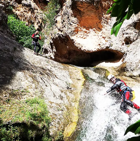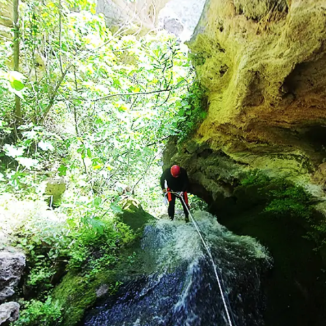 El recorrido comienza adentrándonos en un barranco cerrado, con abundante vegetación y formaciones de tobas calizas moldeadas por la acción del agua a lo largo de los siglos. Su mayor atractivo es el impresionante rápel de 60 metros, uno de los más grandes de la provincia, que pondrá a prueba tus habilidades en el descenso, siempre bajo la supervisión de nuestros guías titulados.