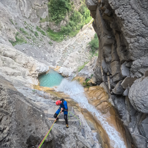 El barranco del Sorrosal lo tiene todo para los amantes del barranquismo: saltos de vértigo, toboganes naturales y una gran vertical final de 100 m, fraccionada en dos impresionantes rápeles de 50 m. Durante el descenso, los aventureros podrán disfrutar de una espectacular poza de aguas turquesas, con vistas privilegiadas al pueblo de Broto.