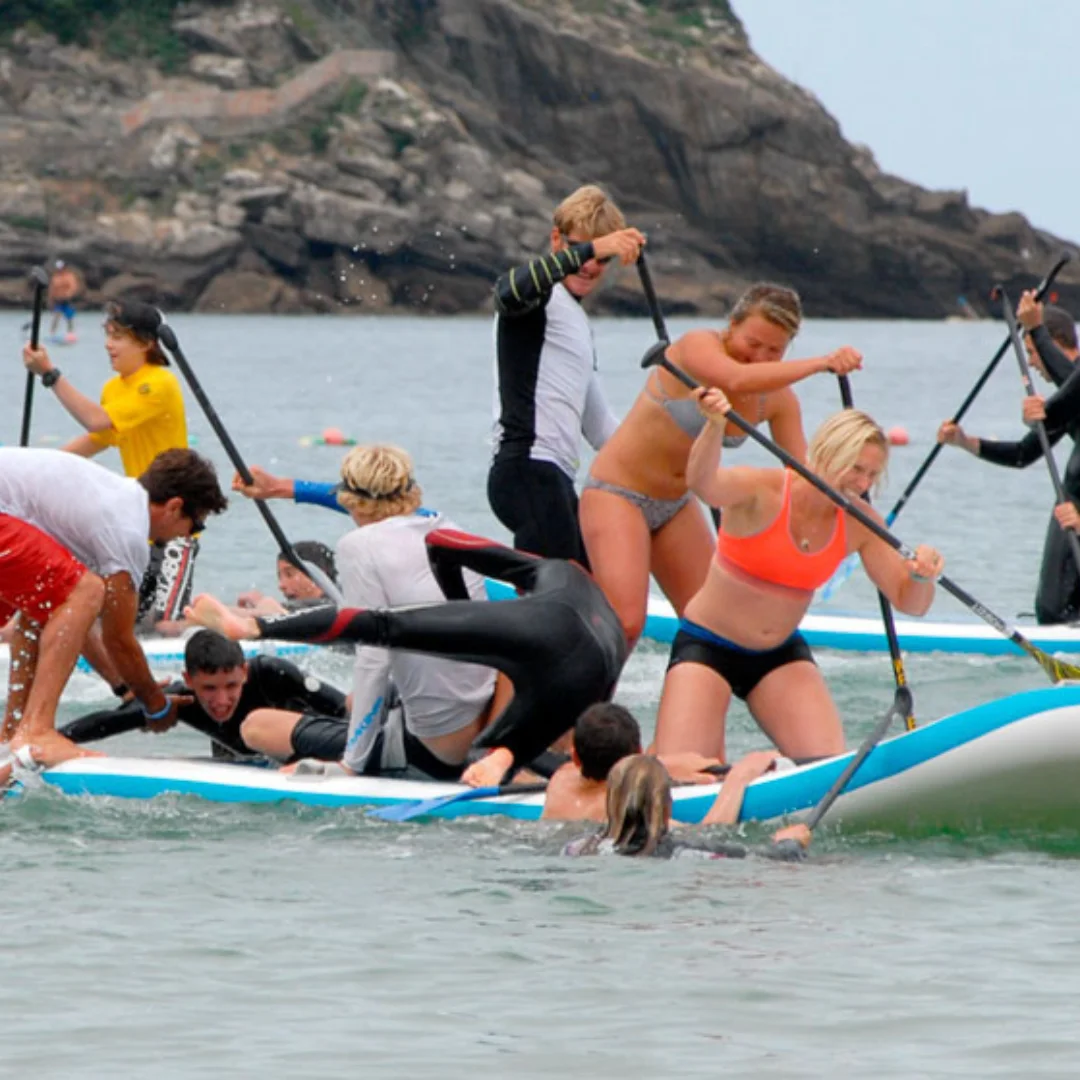 Si estás buscando una actividad divertida para disfrutar en grupo, el alquiler de Big SUP en la Playa de la Concha en San Sebastián es la opción perfecta. Con esta gran tabla de paddle surf, diseñada para varias personas, podrás compartir la experiencia con amigos o familiares mientras reman juntos y disfrutan del mar. Esta modalidad de paddle surf XXL es ideal para grupos, ya que permite que todos suban a la misma tabla, trabajando en equipo para remar y mantener el equilibrio.