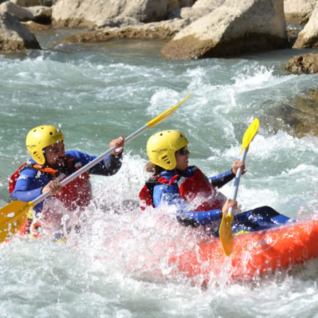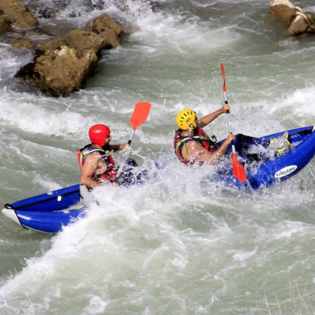 Disfruta de la emoción del canoraft en el río Gállego, una actividad perfecta para quienes buscan aventuras y emociones fuertes en contacto directo con la naturaleza. El canoraft, también conocido como open kayak, es una canoa hinchable de una o dos plazas que permite descender los rápidos de mayor dificultad gracias a su flotación, estabilidad y flexibilidad. Este recorrido, que se extiende por 7 kilómetros desde Carcavilla hasta Murillo, garantiza una experiencia única y divertida. Durante el trayecto, un guía profesional te acompañará en su propio kayak, asegurando un descenso seguro y ofreciendo instrucciones en todo momento.