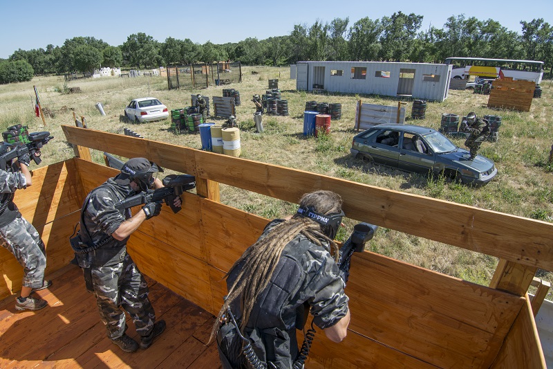 Nuestro campo de paintball en El Escorial está diseñado para que los niños disfruten de una experiencia única en un ambiente natural privilegiado. Con 150.000 m² de terreno y 9 escenarios tematizados, incluyendo aviones, helicópteros, tanques, lanchas, autobuses, vehículos militares, bosques, fuertes y torres, los pequeños podrán dejar volar su imaginación y sumergirse en emocionantes batallas simuladas. Cada escenario está pensado para ofrecer una experiencia diversa y desafiante, asegurando que cada partida sea diferente y llena de emoción.