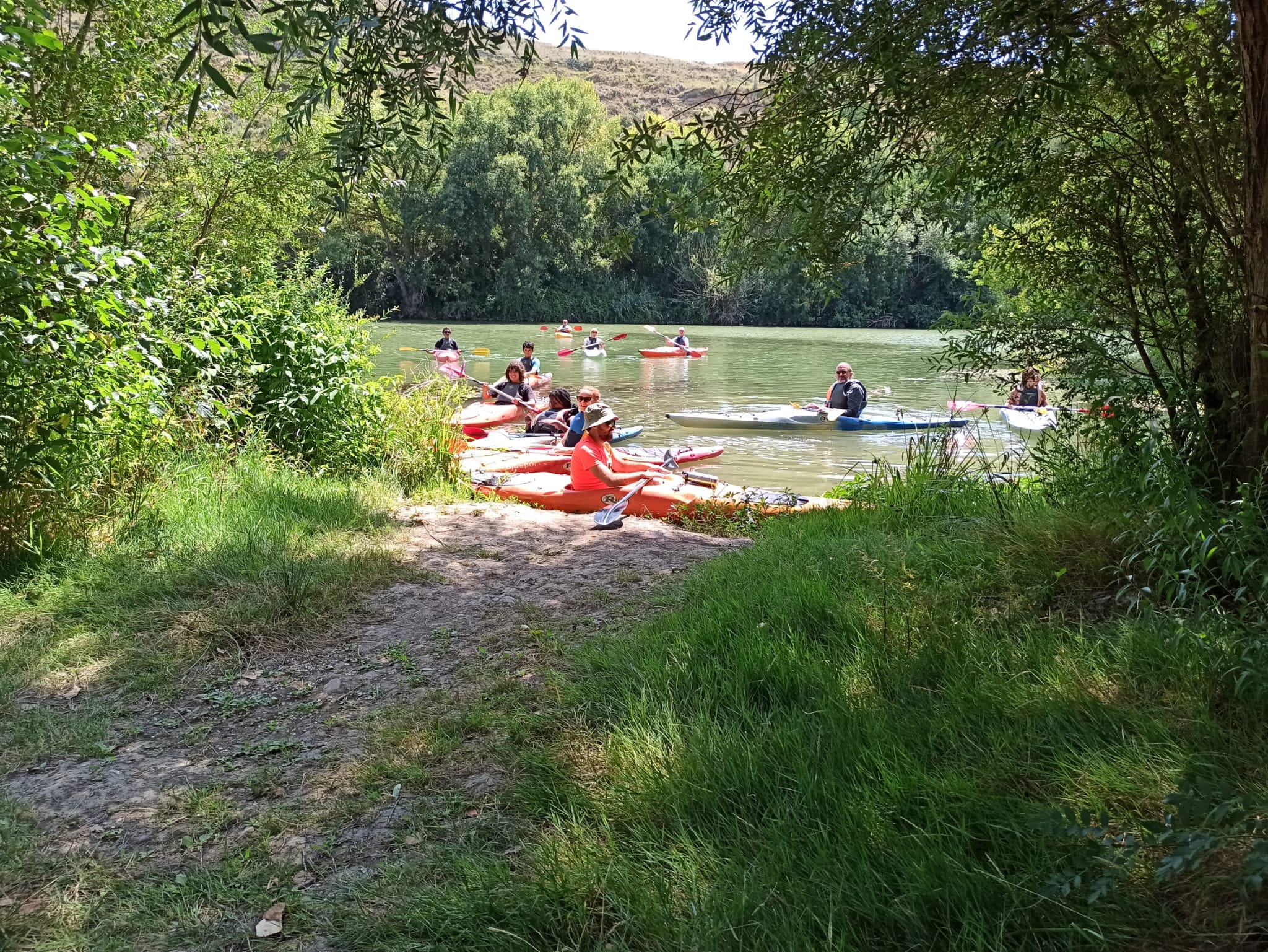 Empezamos en nuestra base de Haro, donde os equipamos y hacemos una introducción clara para que entréis al agua con seguridad: técnica básica, cómo orientar el kayak y qué hacer en las situaciones más habituales del recorrido. Con esta preparación, el grupo rema con confianza y la experiencia se disfruta mucho más.