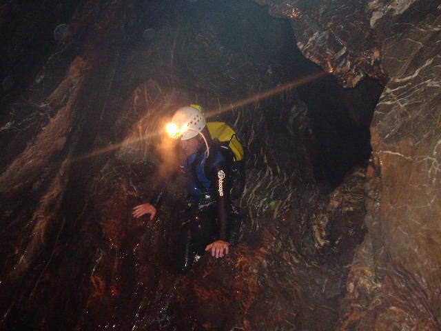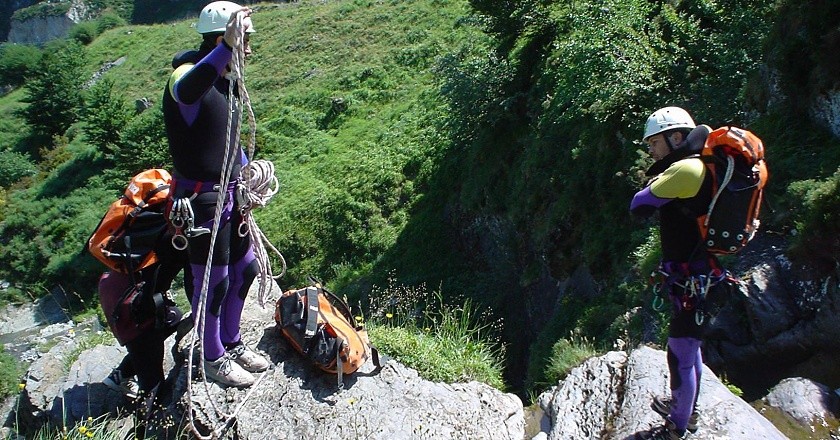 - Traje completo y calcetín de neopreno, casco, frontales, arneses, descendedores, mosquetones, cuerdas, etc.
