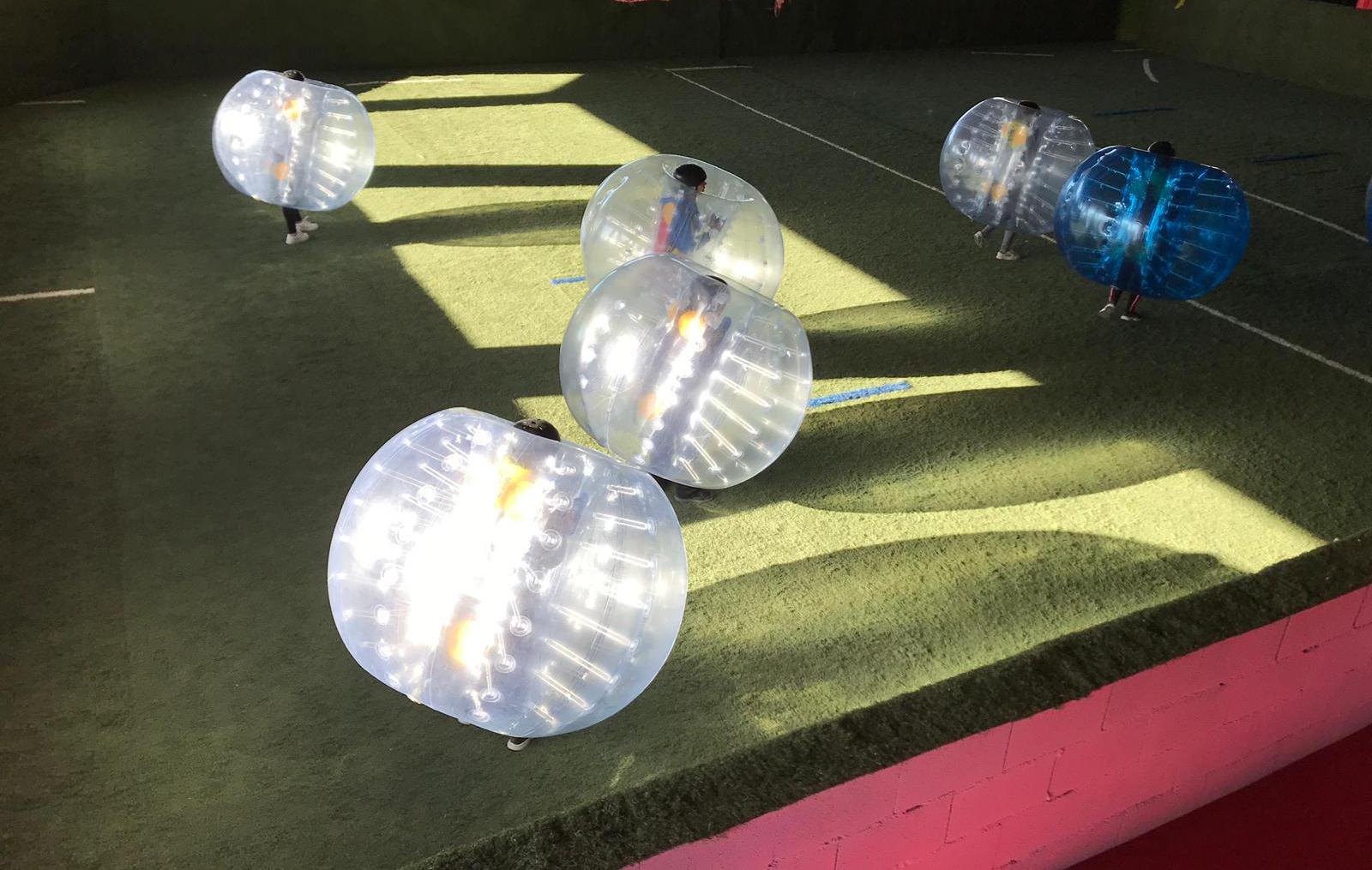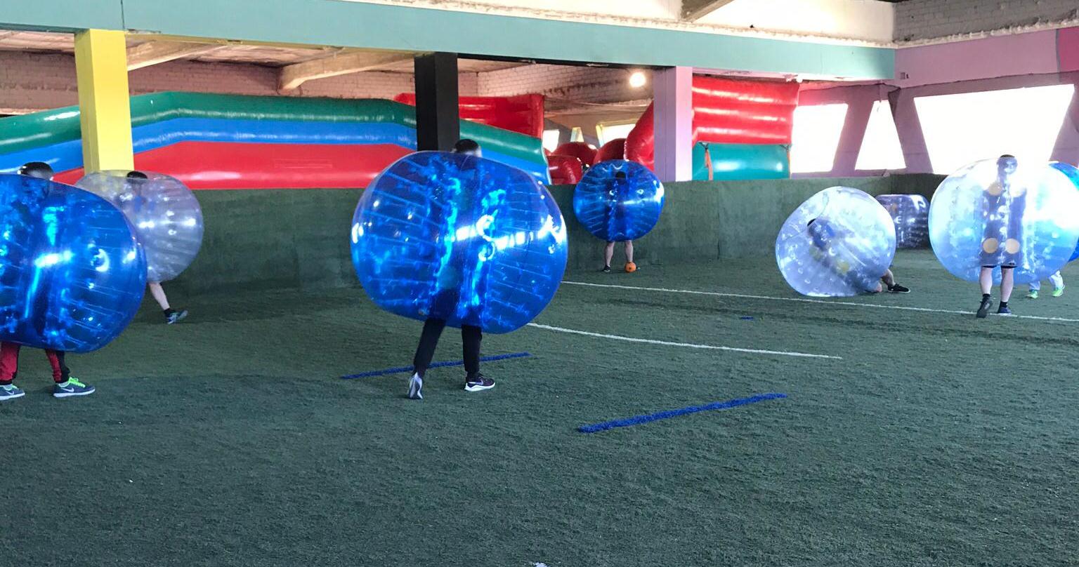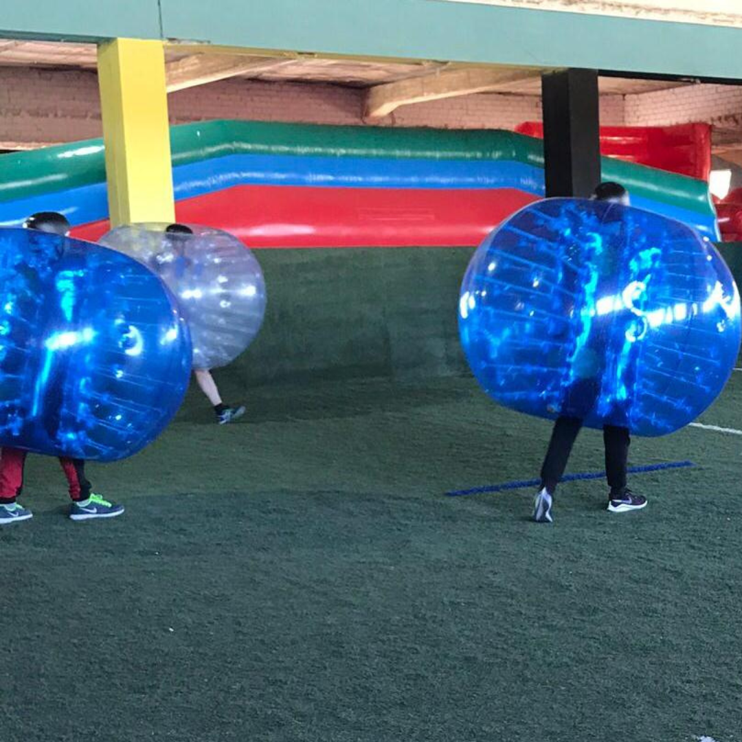 El punto de encuentro será en nuestras instalaciones de Pelabravo, donde os recibiremos y os proporcionaremos todo el material necesario: burbujas, casco de protección y petos si son necesarios para diferenciar equipos. Después os acompañaremos al campo de césped artificial interior, un espacio cubierto que permite jugar haga el tiempo que haga, sin preocuparse por la lluvia o el sol.