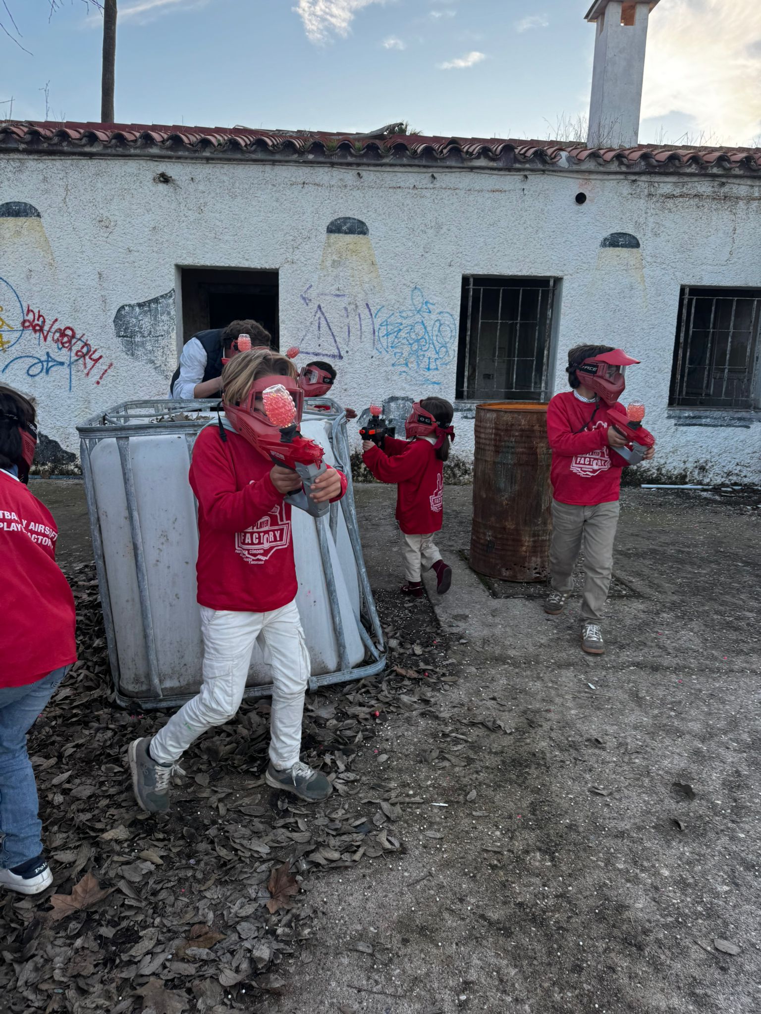 En nuestro campo de Córdoba, a solo 15 minutos del centro, organizamos partidas de gelball a partir de 5 años de edad (actividad especialmente recomendada de 5 a 8 años). Es una opción perfecta para cumpleaños infantiles, celebraciones en familia o primeras experiencias de aventura con amigos, siempre bajo la supervisión de monitores especializados.