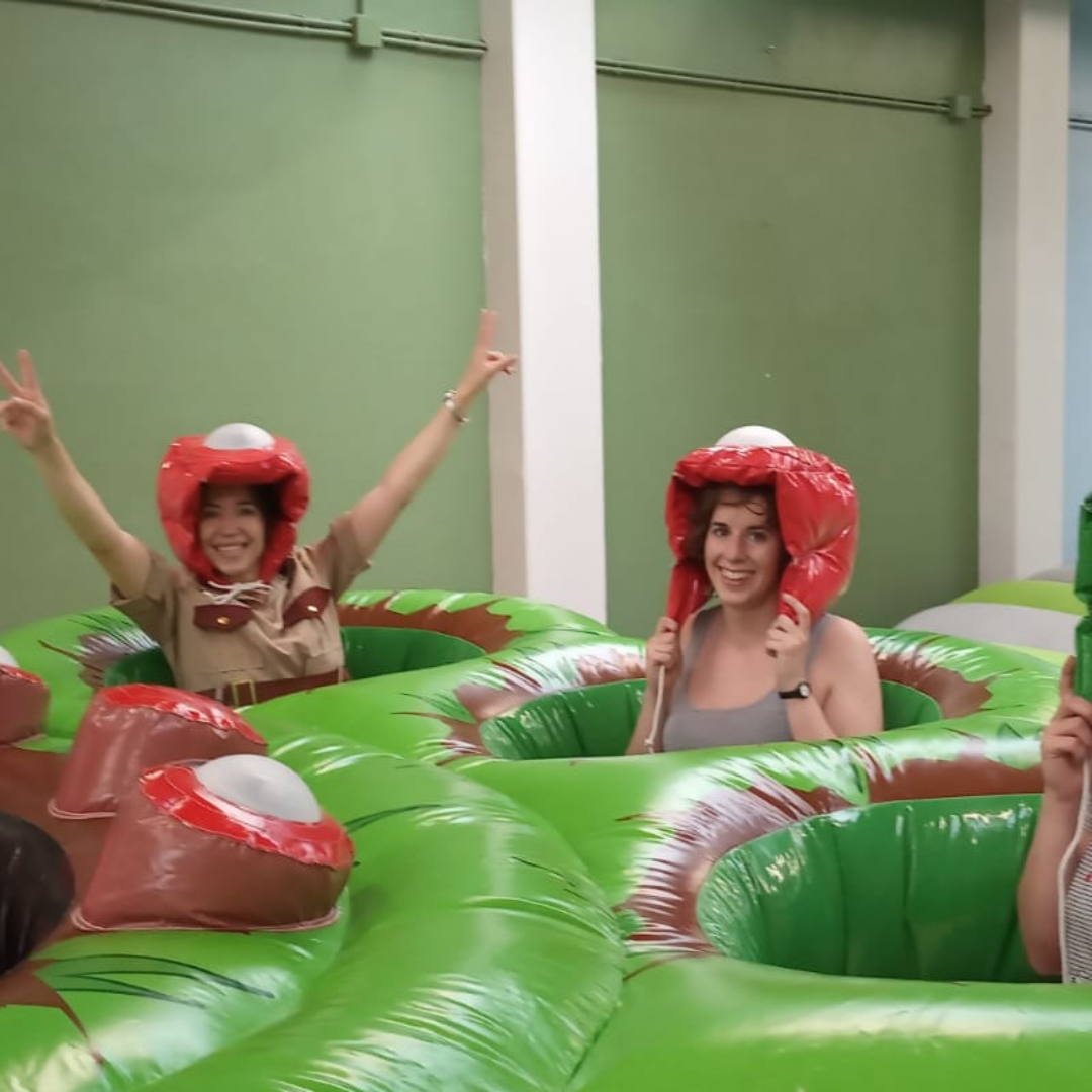 Para los amantes de los juegos interactivos, el Wack a Mole es una actividad que te desafiará a ser rápido y preciso. Tendrás que estar alerta para golpear los objetivos y sumar puntos antes de que desaparezcan. Y si prefieres pruebas de equipo, la sokatira, 4 en raya en parejas y la carrera de tubos serán perfectas para ti. Ambas actividades pondrán a prueba la coordinación y el trabajo en equipo, lo que las hace ideales para grupos de amigos, familias o incluso compañeros de trabajo.