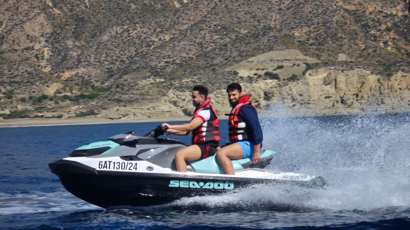 Te recibiremos en nuestra base del puerto de Carboneras, donde nuestro equipo te explicará el manejo de las motos de agua, el itinerario y las normas de seguridad para que disfrutes de la travesía con tranquilidad. Es importante llegar con unos 40 minutos de antelación para completar el contrato, equiparte con el chaleco salvavidas y dejar tu vehículo en nuestras instalaciones. Navegarás sobre motos Yamaha VX biplaza, pensadas para ofrecer potencia y estabilidad en rutas más largas.