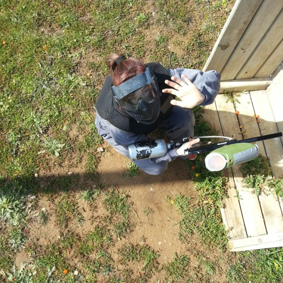 Antes de empezar la acción, cada jugador será equipado con el material de protección necesario: un mono que cubre desde el cuello hasta los pies, una máscara protectora para la cara y un chaleco protector para las chicas. Nuestras marcadoras de aire comprimido disparan bolas de pintura biodegradables, sin dejar marca si se respeta la distancia de seguridad.