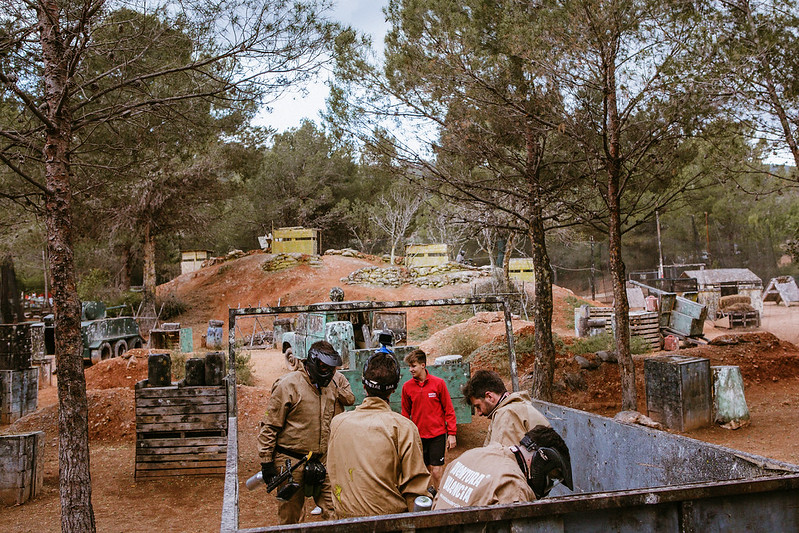 Al llegar, os recibiremos y comenzaremos con una explicación breve del desarrollo de la actividad. Después equipamos a cada participante con protección completa (máscara y chaleco) y su marcadora, y hacemos una comprobación previa para que todo el mundo vaya cómodo antes de entrar al campo.