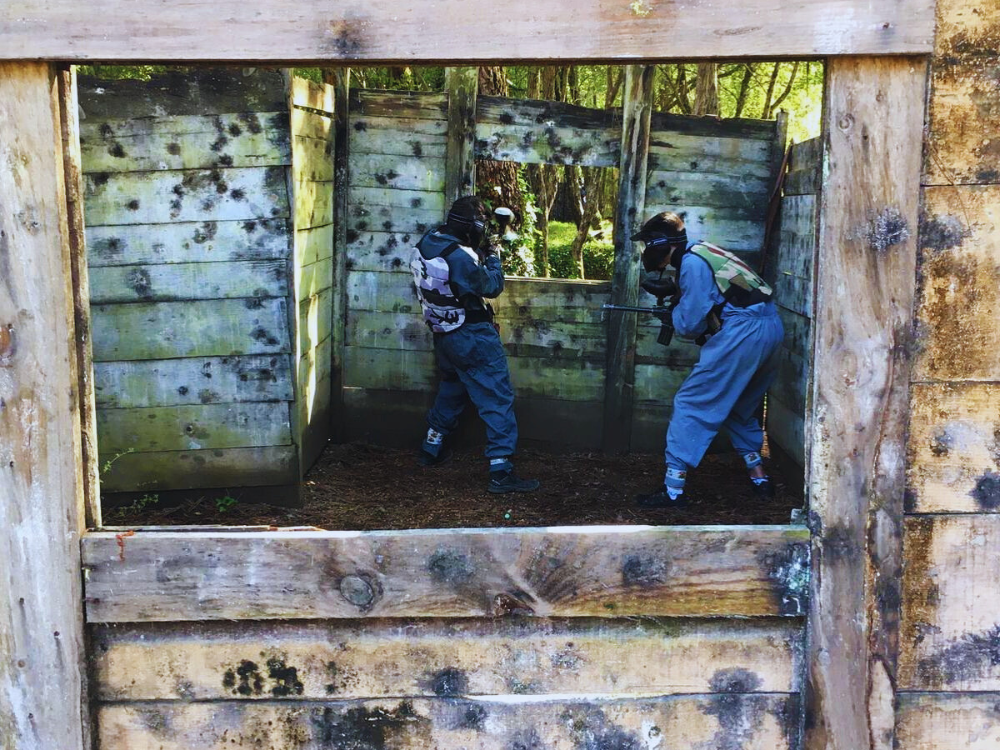 Los adultos acompañantes pueden observar las partidas desde el exterior. Y si lo desean, también pueden unirse al juego utilizando el mismo equipamiento y siguiendo las mismas reglas del paintball infantil.
