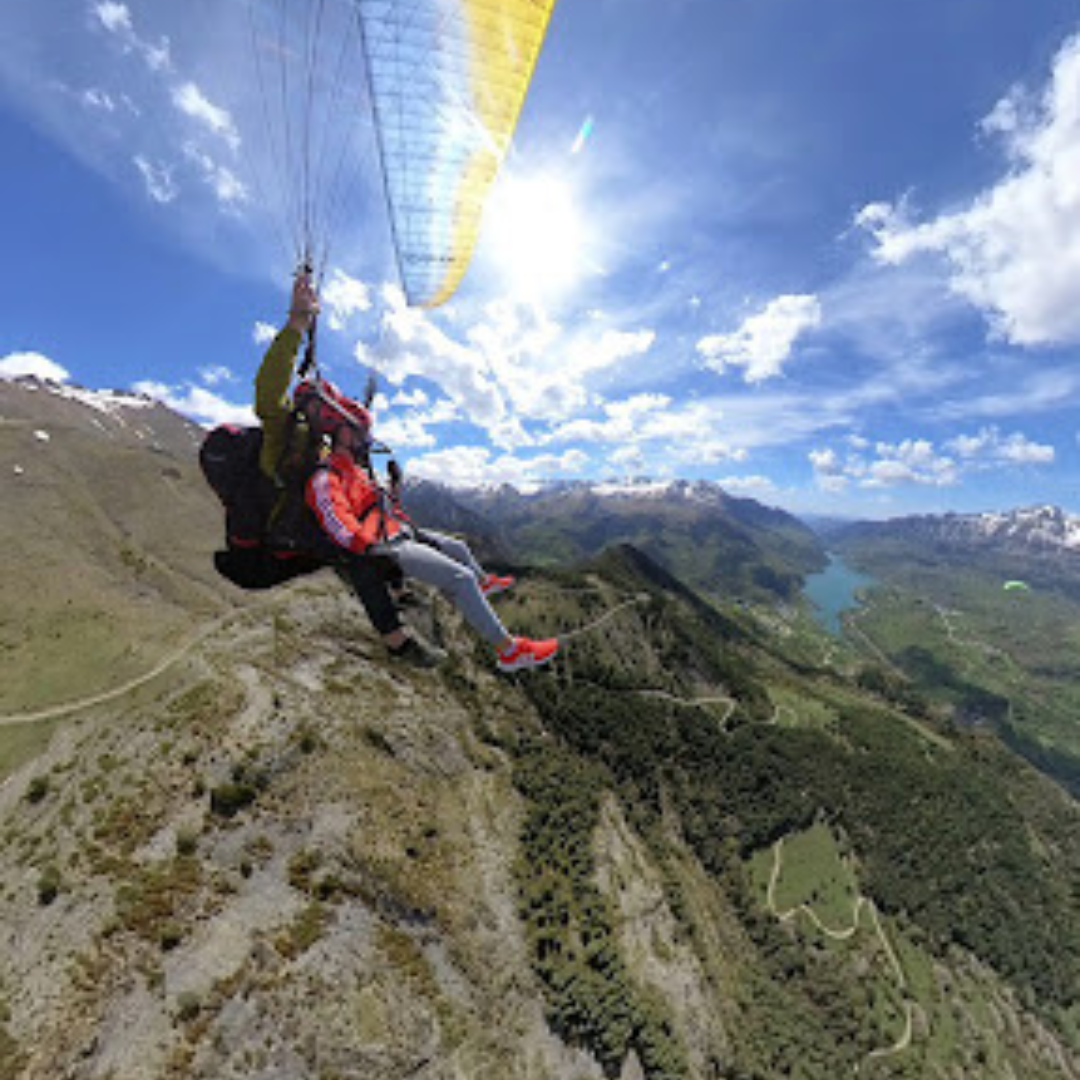 Te invitamos a vivir un vuelo en parapente biplaza en el Valle de Tena, Huesca, en pleno Pirineo Aragonés, sobre un valle amplio y luminoso rodeado de montañas que alcanzan los 3.000 metros de altitud. Desde el primer momento sentirás esa mezcla de emoción y tranquilidad que solo ofrece el vuelo libre en un entorno de alta montaña tan espectacular.