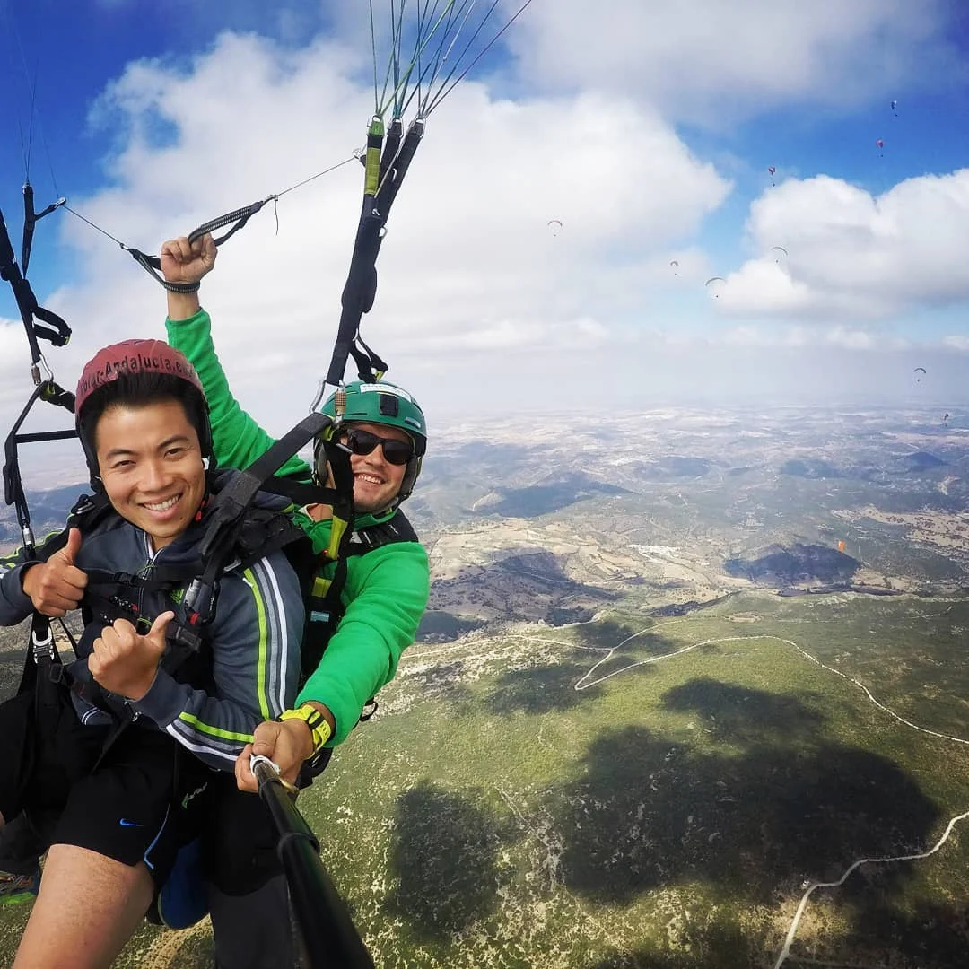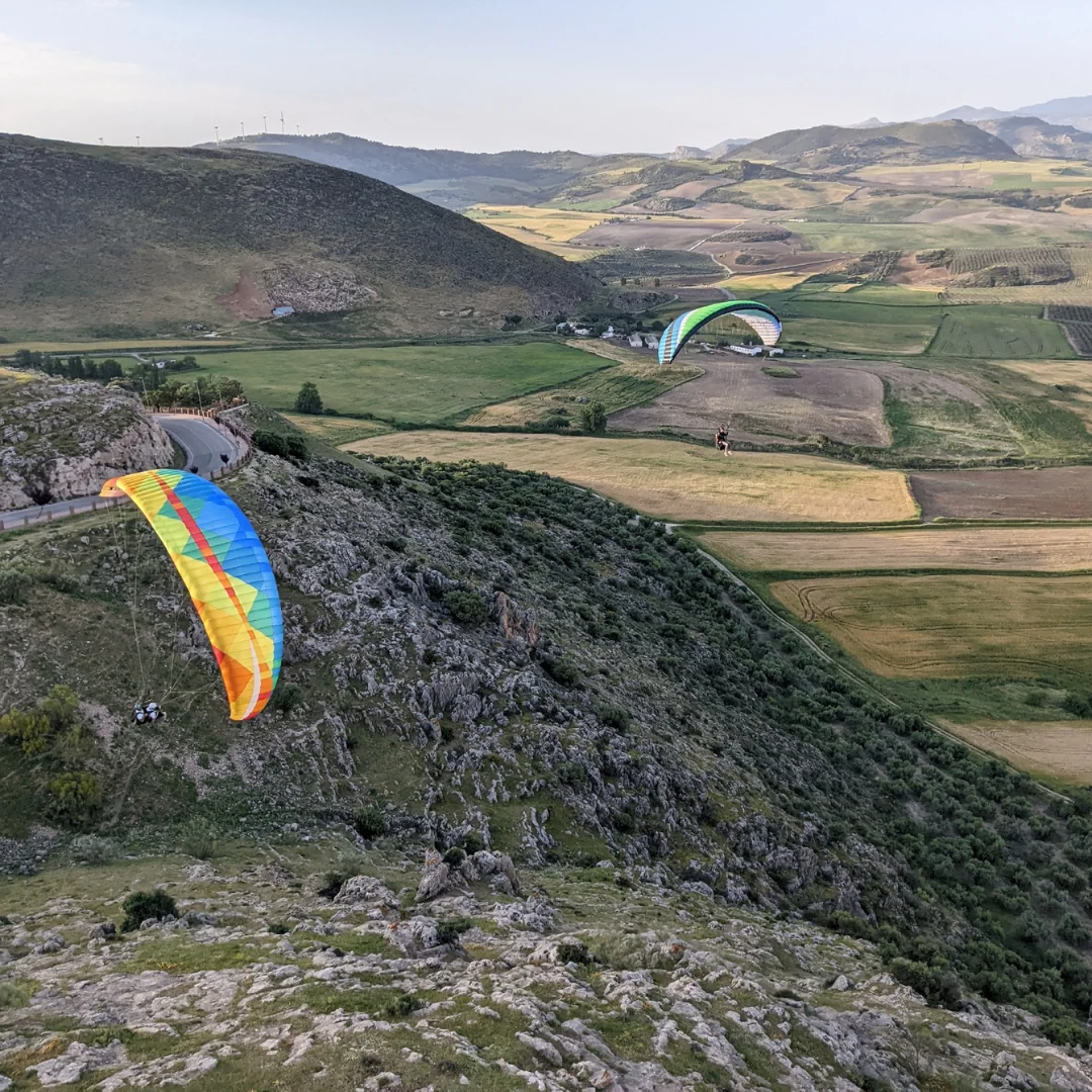Aprovechamos las térmicas del día para ganar altura y mantenernos en el aire, desplazándonos de corriente en corriente. Durante al menos 40 minutos, vivirás una aventura aérea sostenida, con vistas amplias y esa sensación única de ir “navegando” el cielo de Andalucía.