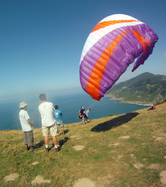 Volamos desde Kukuarri (Orio) y, según la meteorología del día, realizamos el vuelo en dirección Zarautz por Talai Mendi o en dirección Igeldo por Kukuarri. La zona exacta y la hora se confirman entre 24 y 48 horas antes, basándonos en la previsión, y normalmente volamos desde el mediodía hasta la tarde (habitualmente entre las 13:00 y las 18:00), cuando se dan las mejores condiciones para volar sin riesgos.