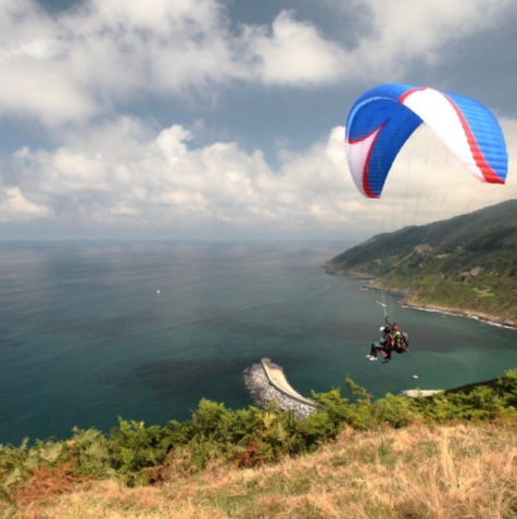 Vuelo premium en parapente en Orio con traslados, pintxo y reportaje incluido