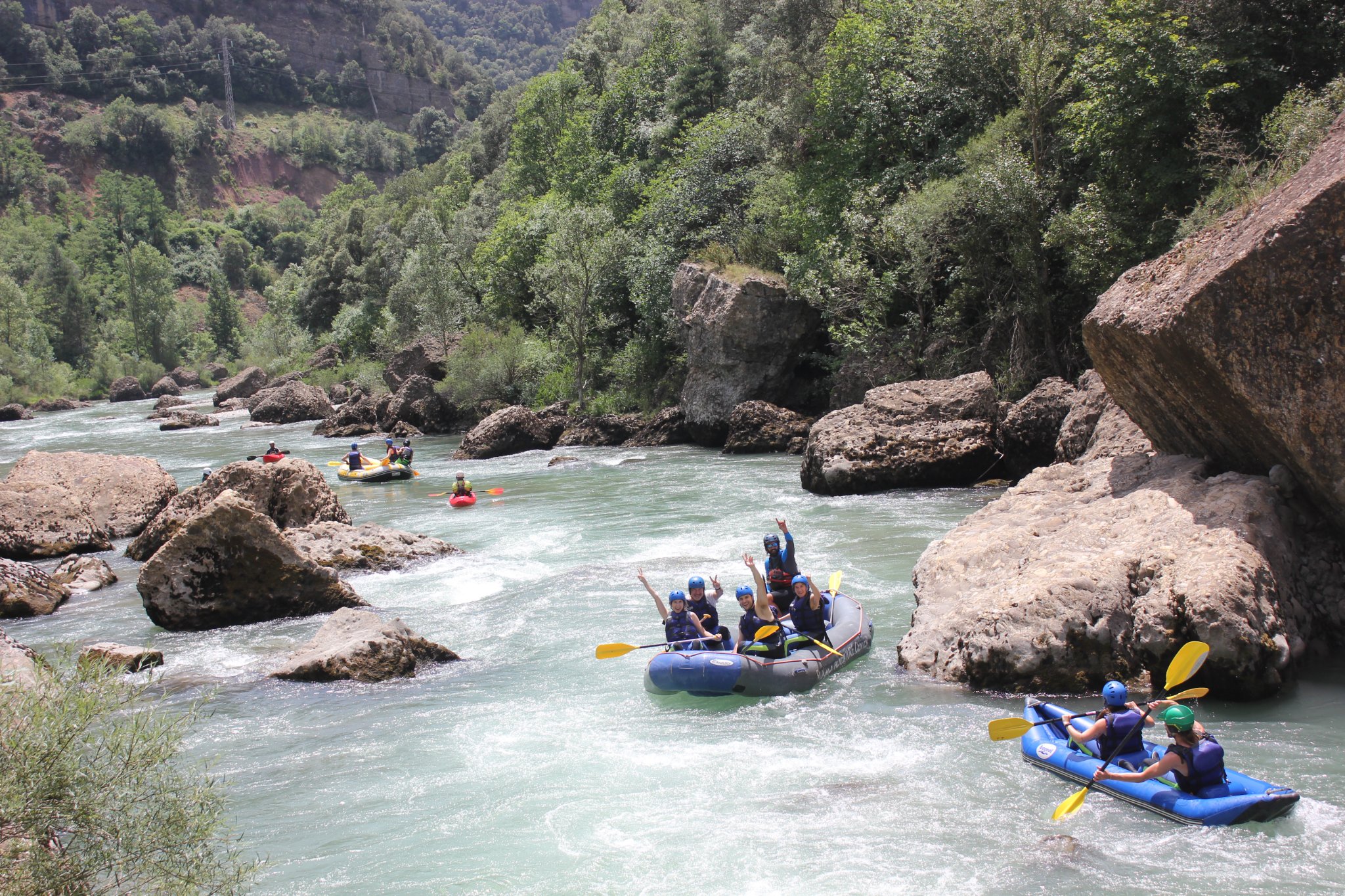 A lo largo del recorrido encontraréis tramos más tranquilos para remar con ritmo y otros más movidos que aportan esa chispa de emoción que hace tan entretenido el rafting. El entorno acompaña en todo momento, con vegetación, paisaje pirenaico y una sensación constante de aventura al aire libre que convierte esta actividad en un plan redondo para la tarde.