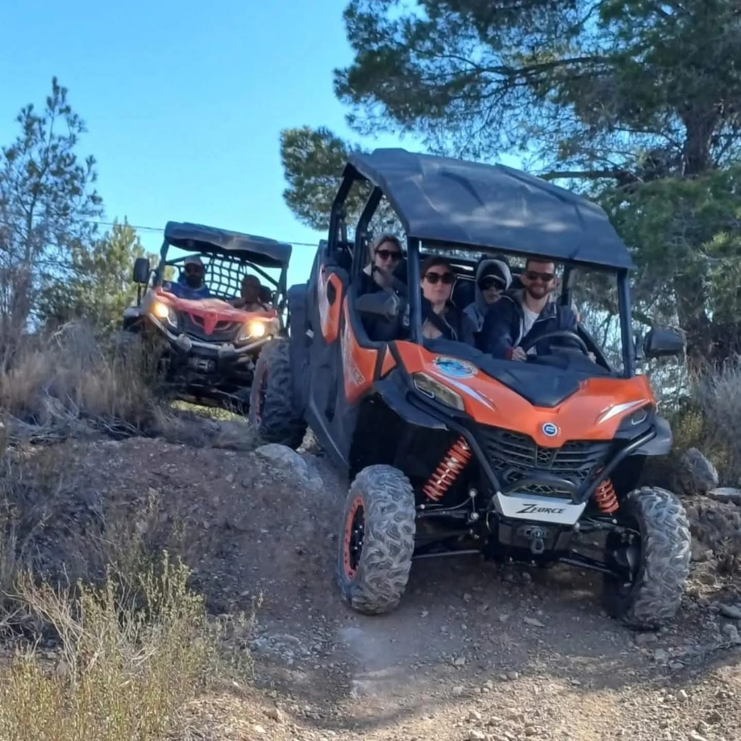 Gracias a los buggies biplaza y de 4 plazas, es una excursión perfecta para familias y grupos que quieran compartir vehículo y experiencia, disfrutando tanto del trayecto como del destino. Es la opción ideal si buscas una ruta en buggy larga desde Benidorm, más orientada a paisaje y confort, sin renunciar a la emoción de la conducción.