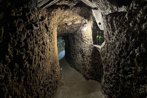 El gran protagonista de la ruta son los lagares rupestres, vestigios tallados en roca que permiten entender cómo se elaboraba el vino en la Edad Media y épocas anteriores. A lo largo del trayecto visitamos varios ejemplos conservados en el paisaje, observando cómo se prensaba la uva y cómo el mosto fluía hacia depósitos excavados, una forma de producción que conecta directamente con las raíces del vino de Rioja.