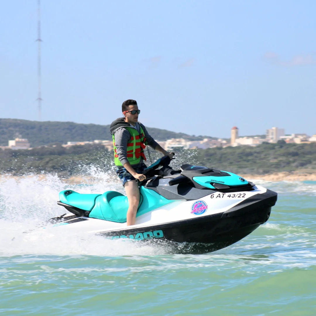 La experiencia comienza en el puerto deportivo de Alicante, muy cerca del centro de la ciudad. Te pediremos llegar con algo de antelación para formalizar el contrato, recibir el briefing de seguridad y equiparte con el chaleco salvavidas. Navegarás en motos de agua Sea-Doo GTX biplaza, potentes y muy confortables, acompañando en todo momento a un monitor que lidera la ruta.