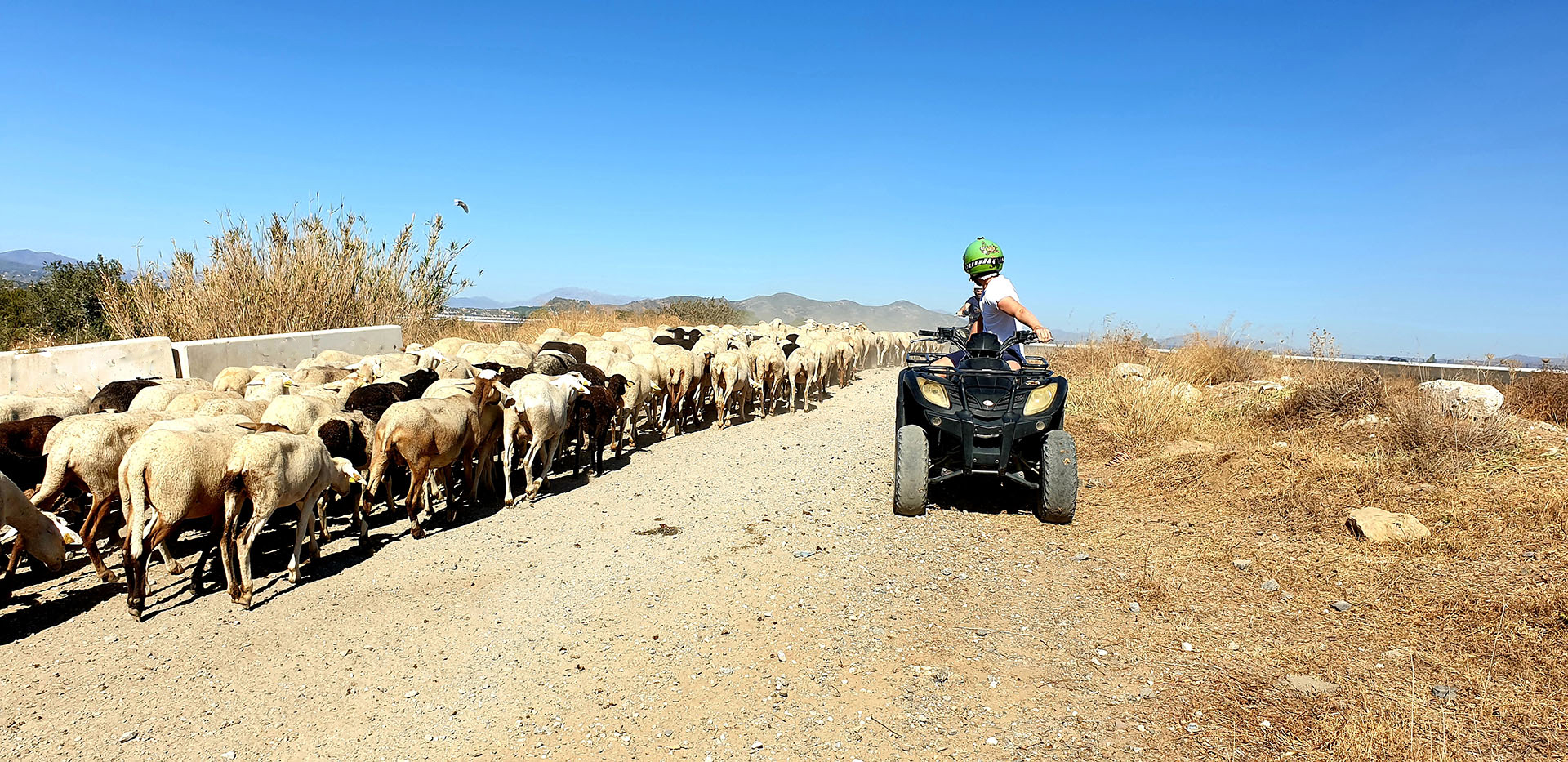 Durante esta ruta en quad corta rodarás por caminos de tierra rodeados de vegetación, con la posibilidad de ver fauna típica de la zona: conejos, ovejas, caballos o distintas aves que habitan el entorno. El punto más especial es el cruce del cauce del río Guadalhorce, donde sentirás de verdad lo que supone llevar un quad todoterreno sobre terreno cambiante.