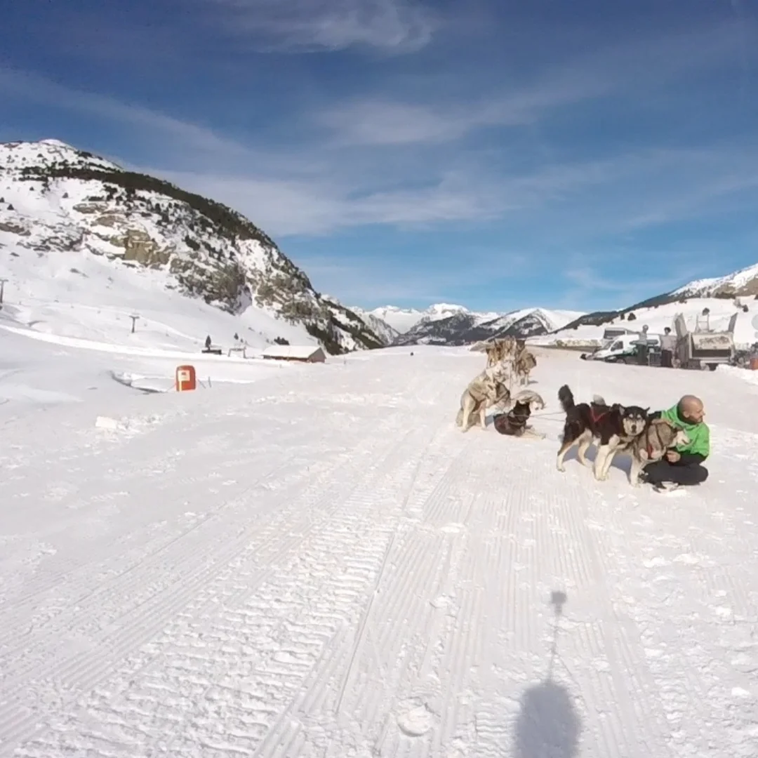 Paseo en trineo de perros en el Pirineo Aragonés desde el Valle de Pineta en Bielsa, Huesca