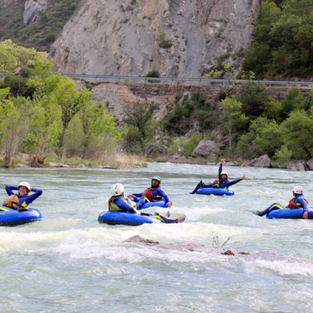 Nuestro tubing familiar en el río Gállego es la actividad perfecta para disfrutar en familia de una manera refrescante y divertida. Sentados en un “donut” hinchable individual, diseñado especialmente para esta experiencia, los participantes se dejarán llevar por las corrientes del río sin necesidad de técnica previa ni experiencia. Es una forma emocionante de descender los rápidos del Gállego, asegurando risas y adrenalina en cada tramo. El tubo es muy estable, permitiendo que todos disfruten del movimiento y las corrientes de forma segura y divertida, sin tener que hacer más que relajarse y disfrutar.