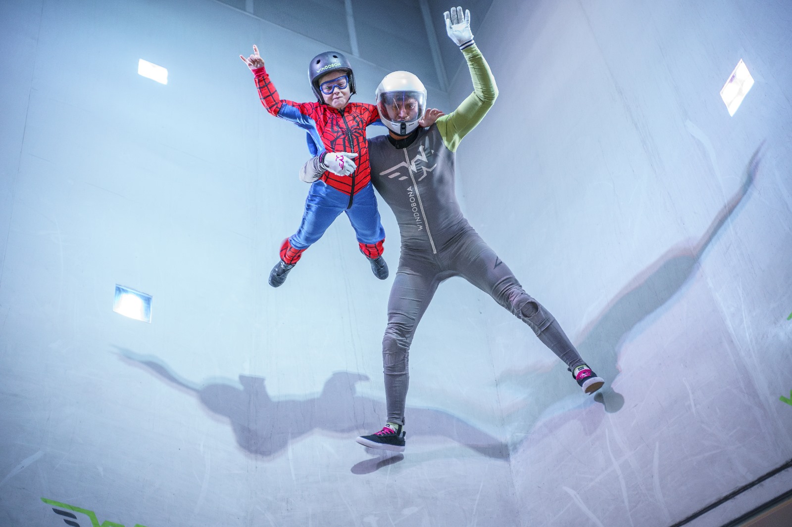 Una vez preparados, los pequeños pilotos entran al túnel de viento bajo la supervisión de un instructor experimentado. El túnel genera una corriente de aire vertical que les permite flotar y experimentar la sensación de vuelo libre. Los instructores están presentes en todo momento para guiar y asistir, asegurándose de que cada niño disfrute de una experiencia segura y emocionante. Este entorno controlado permite que los niños experimenten la sensación de la caída libre de una manera completamente segura, con la tranquilidad de estar siempre supervisados por profesionales.