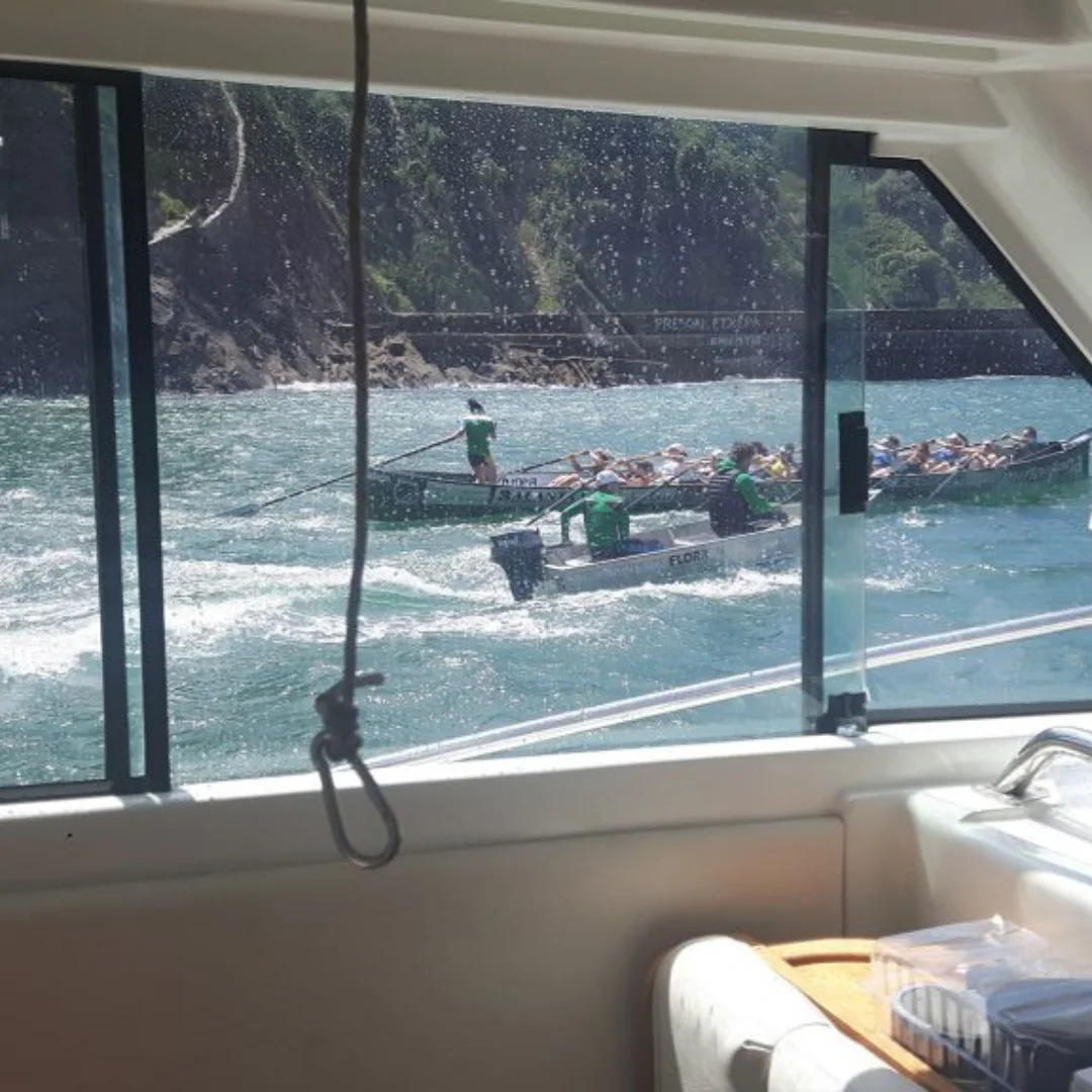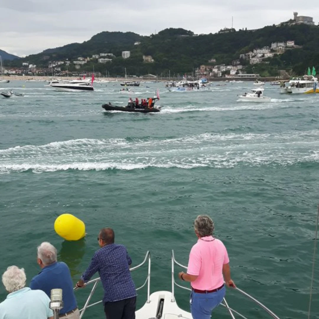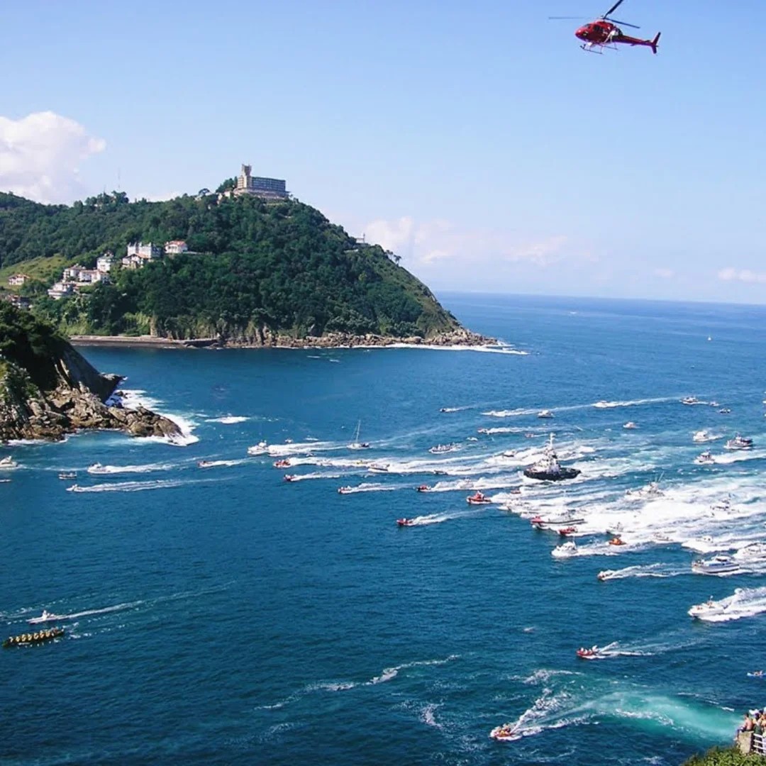 El barco se aproxima a la bahía de La Concha, donde las traineras competirán por la Bandera de la Concha, uno de los galardones más prestigiosos del remo en España. A medida que nos acercamos, podrás disfrutar de una vista despejada y exclusiva, sin el bullicio de la multitud en la playa o el paseo. Desde esta posición en el mar, serás testigo de la habilidad, fuerza y coordinación de los remeros que se esfuerzan al máximo para cruzar la meta y llevarse la victoria.