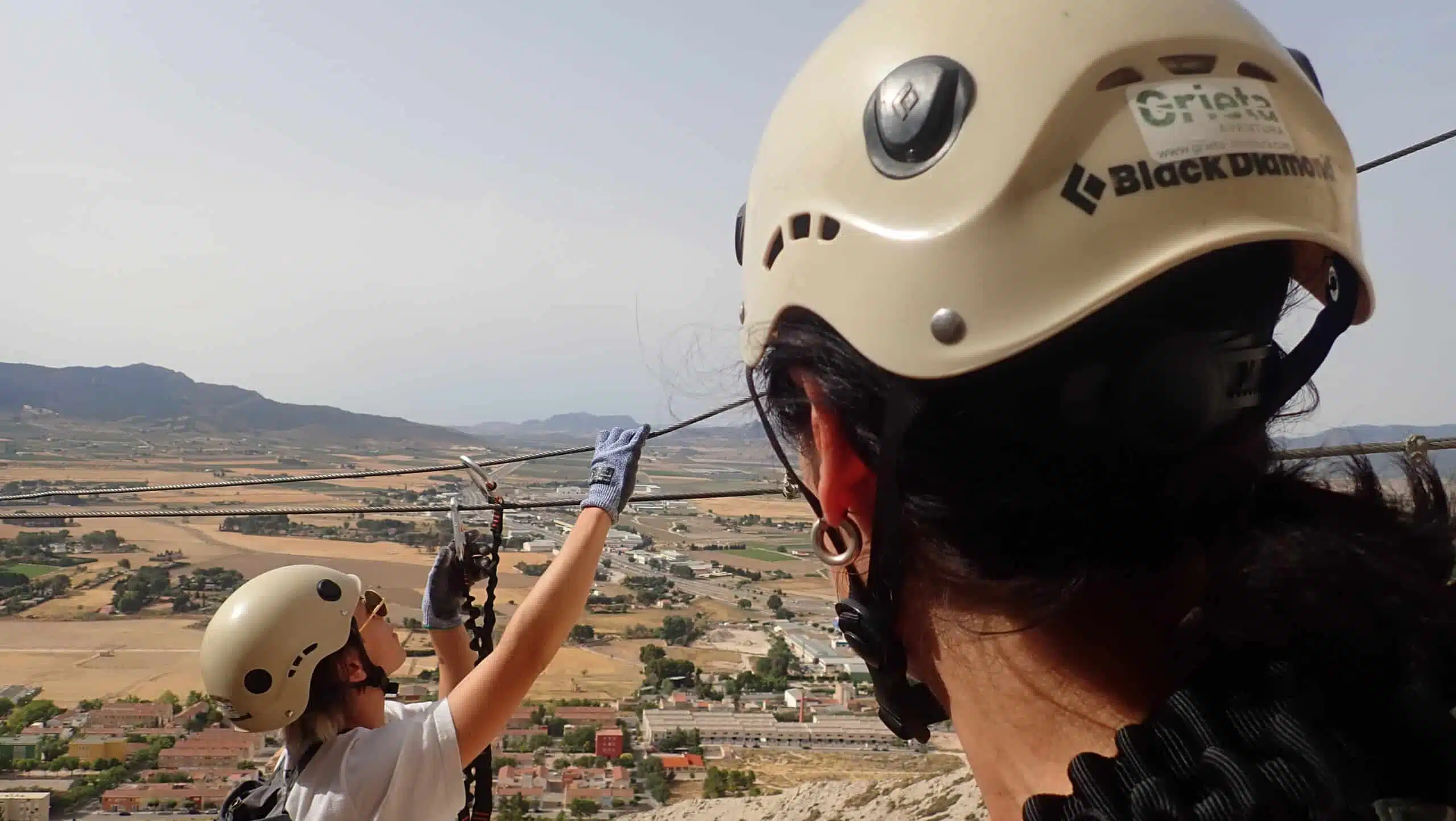 La actividad dura aproximadamente unas 3 horas, con un trazado que va ganando altura y regalando panorámicas del entorno de Elda mientras avanzáis por el itinerario. Es una ferrata muy agradecida para disfrutar del “sube y avanza” con seguridad, en un entorno natural que se siente muy auténtico.