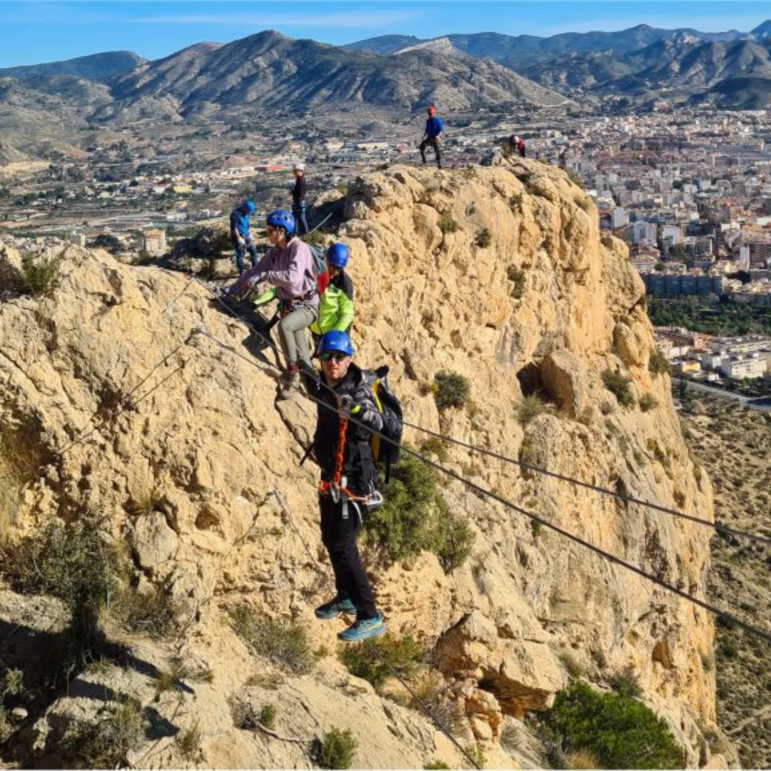 Ubicada en la ciudad de Elda, en la provincia de Alicante, esta vía ferrata presenta un recorrido de aproximadamente 3 horas de duración. Con un nivel de dificultad medio (k1-k2-k3), es adecuada para personas con un buen estado físico y relativa experiencia previa en actividades al aire libre.