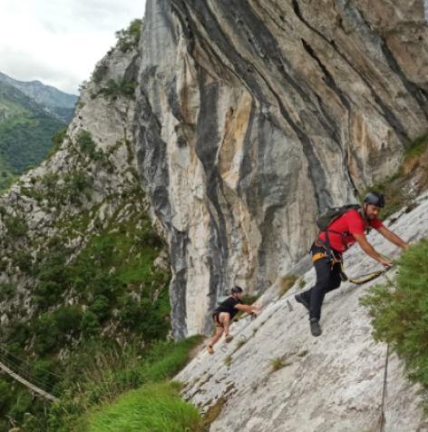 Otro punto a destacar es la variedad del recorrido: paredes verticales, pasos horizontales, puentes tibetanos y pasarelas que ofrecen emoción continua y hacen de esta vía una de las más completas y desafiantes de Cantabria. Todo ello rodeado por la belleza del valle de La Hermida, un entorno natural que marca la entrada a los Picos de Europa.