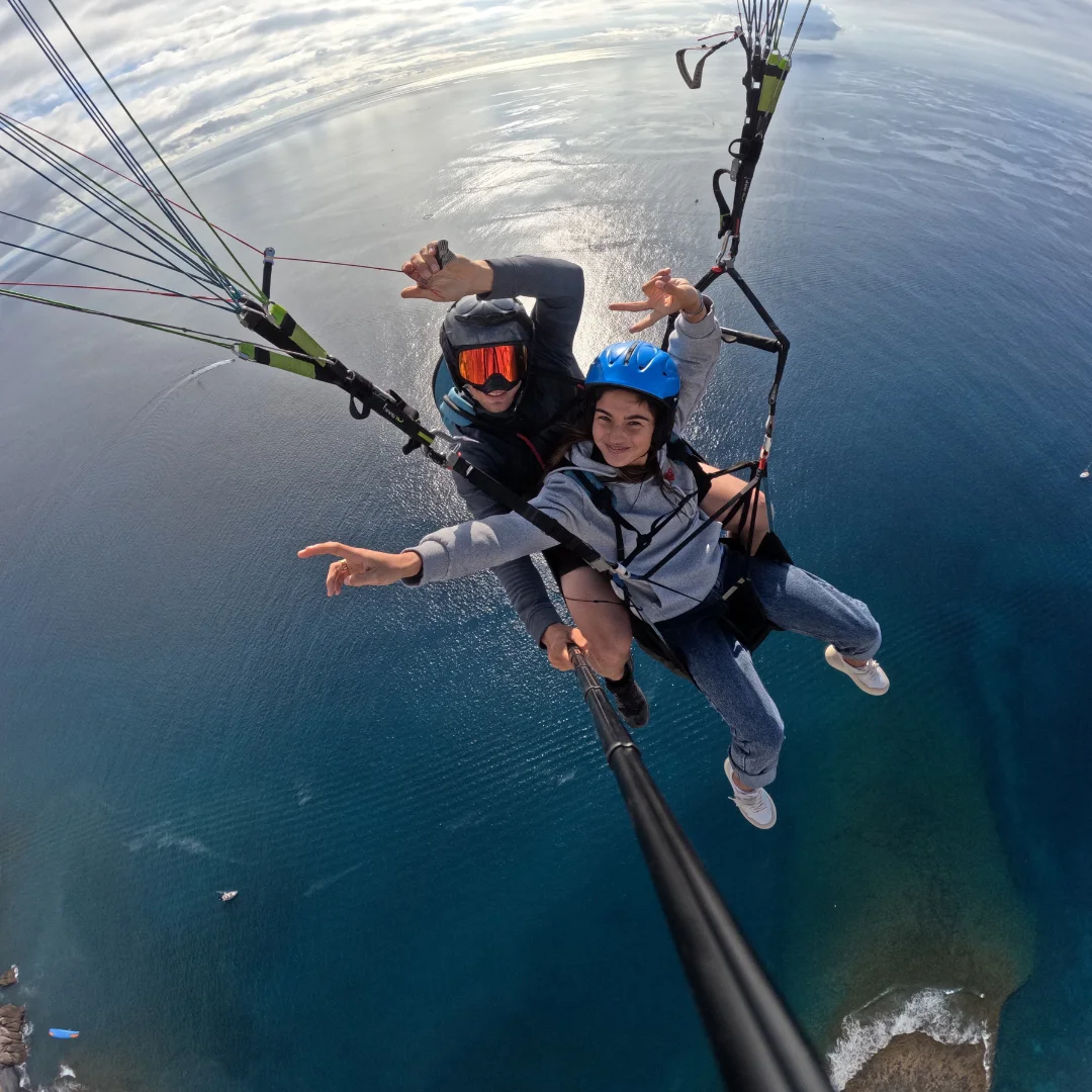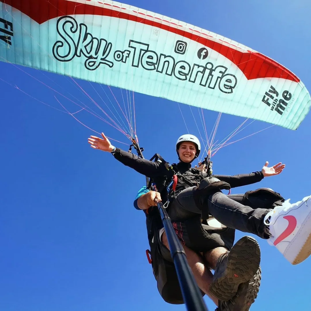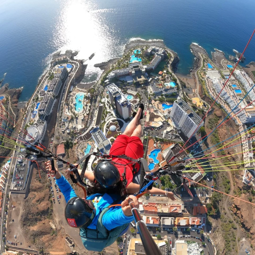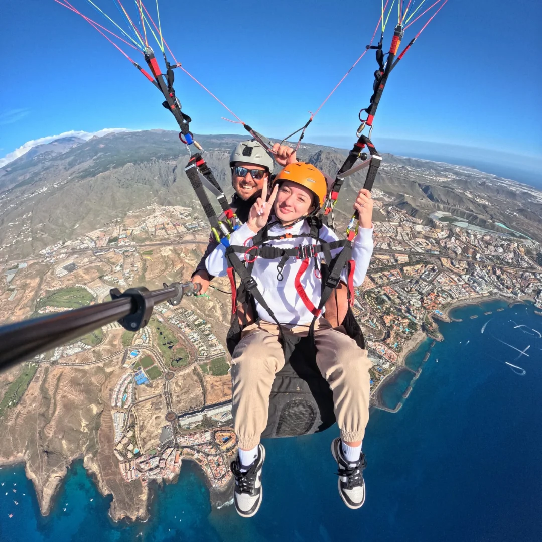 ¡Libertad, emoción y adrenalina te esperan en el cielo de Tenerife! Te invitamos a disfrutar de una experiencia única de parapente biplaza en Tenerife, donde el parapente en Adeje se convierte en la aventura definitiva. Descubre la belleza de la isla desde una perspectiva totalmente nueva mientras vuelas sobre majestuosos barrancos y la impresionante costa de Adeje.