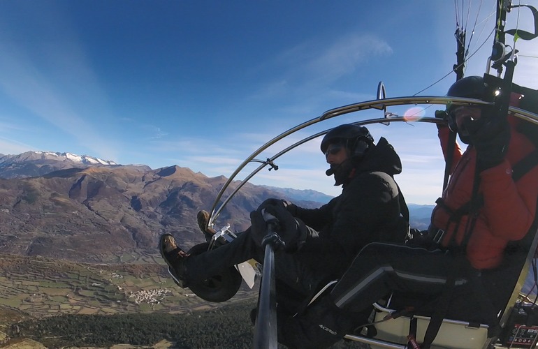 Cada vuelo en paramotor tiene una duración aproximada de 20 minutos de vuelo por persona, un tiempo perfecto para asimilar la sensación de estar volando sobre el valle, hacer fotos, mirar el paisaje con calma y disfrutar del ruido constante del motor mientras avanzas suavemente sobre montañas, bosques y pueblos. La temporada de verano va, aproximadamente, de junio a septiembre; en invierno volamos durante los meses en los que la estación de esquí de Cerler está abierta, de diciembre a marzo aproximadamente.