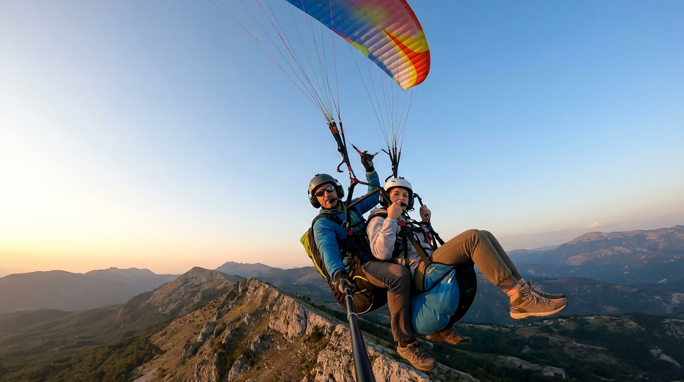 Las escuelas de primer nivel renuevan sus velas (parapentes biplaza) cada pocas temporadas. Además, el extra de llevarte un recuerdo inmersivo cuenta: la grabación con cámaras Insta360 o GoPro de última generación añade un valor de entre 20€ y 40€ al paquete básico, dependiendo de si incluye edición posterior.